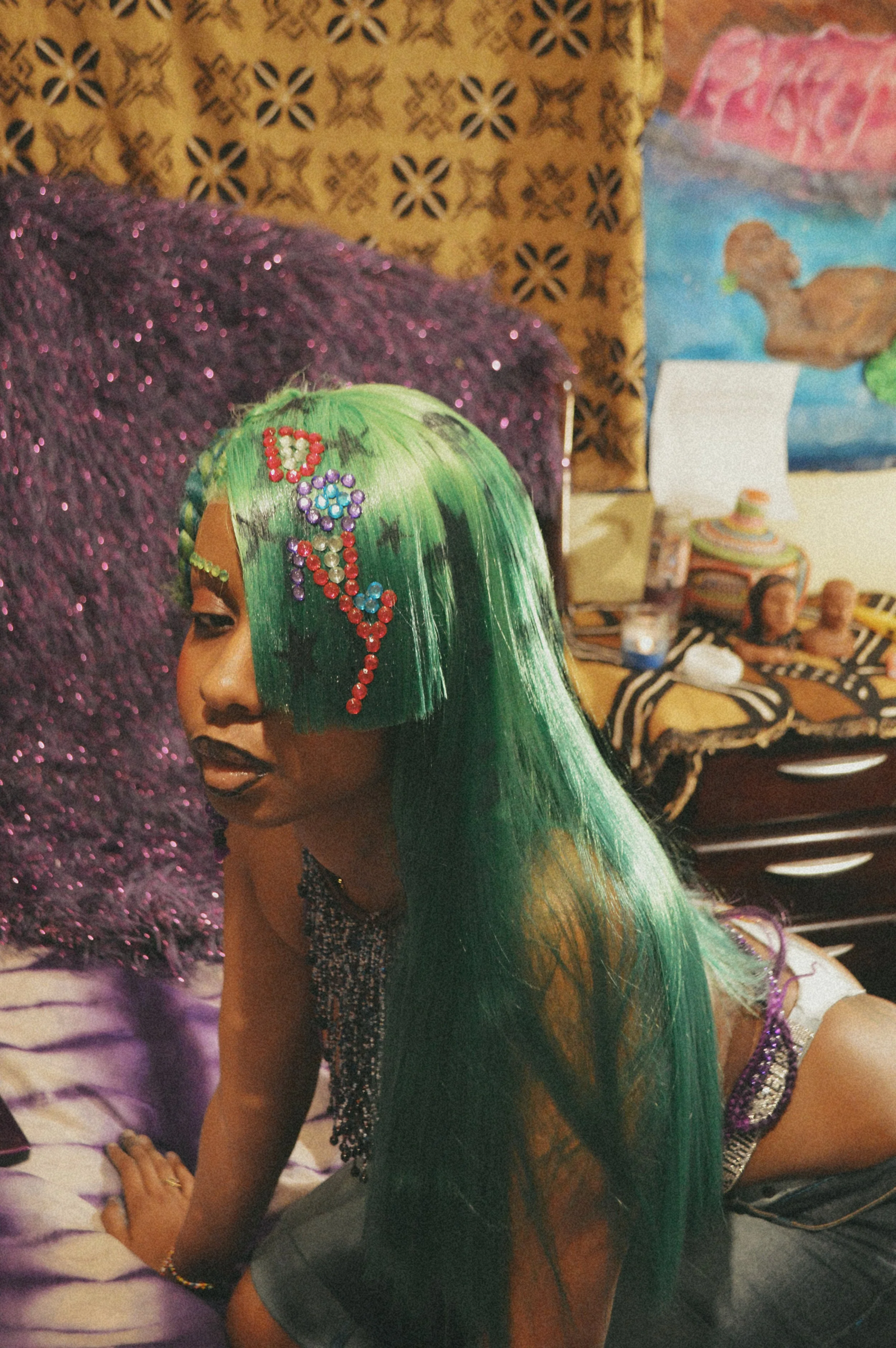This shoot and piece is inspired by 50s-80s Malian portraiture and the intertwining symbolisms of Queerness found between hair braiding, gender, and Black culture.